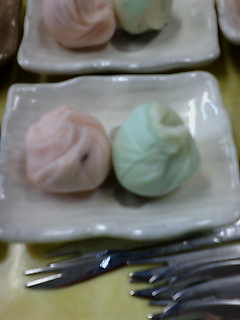 お吸い物に梅なピンク素麺と抹茶な緑の素麺2色でアレンジ